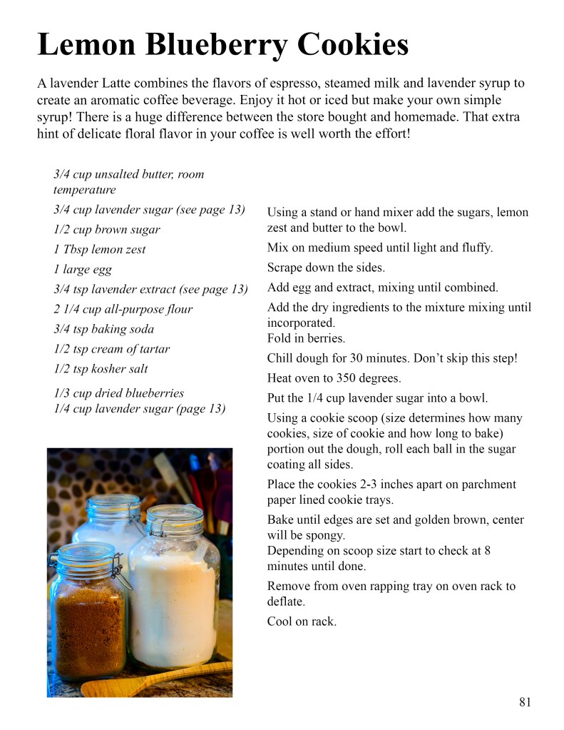The book presents 48 delicious recipes all featuring lavender, from basic pantry essentials, sweets and treats, starters and sides, savory dinners, and more. Each recipe is accompanied by mouth-watering photos by award winning photographer Robert Ketcham.